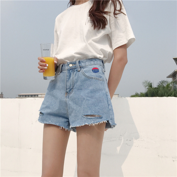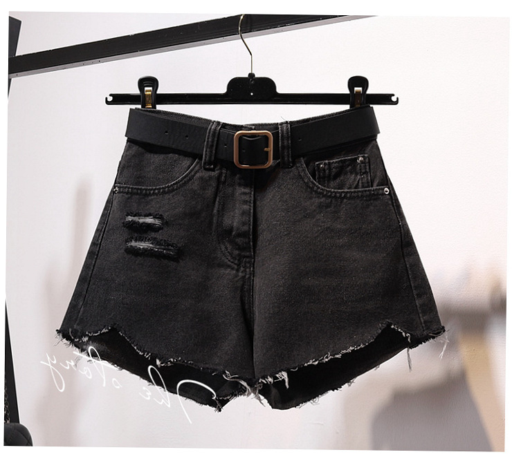 高腰破洞牛仔短褲女春夏韓版不規(guī)則毛邊chic闊腿熱褲