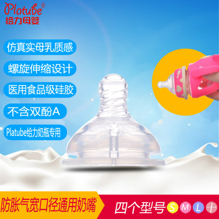 適配:給力platube所有奶瓶,嬰兒硅膠寬口標(biāo)準(zhǔn)奶嘴,適合寬口奶瓶通用,孔徑有:小圓孔、中圓孔、大圓孔和“十”字孔四個(gè)流量可選擇。每個(gè)奶嘴都有單獨(dú)防塵盒包裝,干凈衛(wèi)生,本款奶嘴為給力奶瓶原裝款