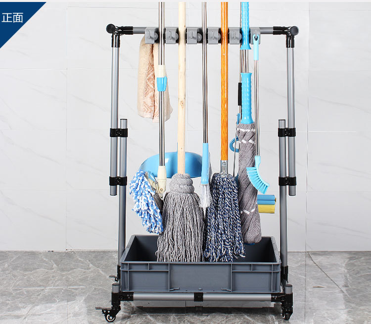 16掛不銹鋼可移動(dòng)拖把架落地式掛架掃把墩布置物架011