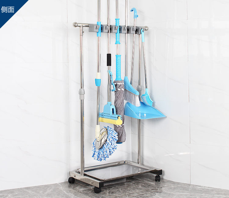 16掛不銹鋼可移動拖把架落地式掛架掃把墩布置物架011