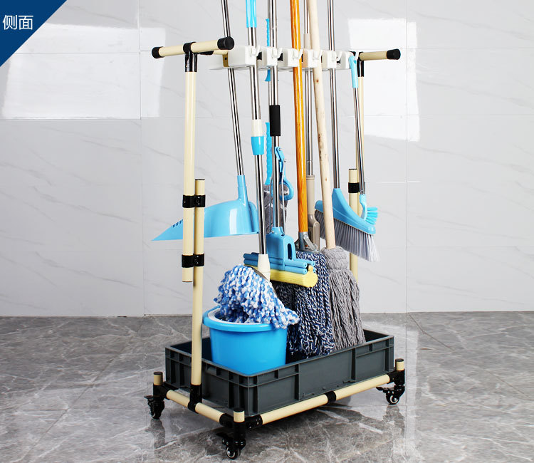 011可移動落地拖把架米黃色16掛20鉤掛架子墩布架收納架