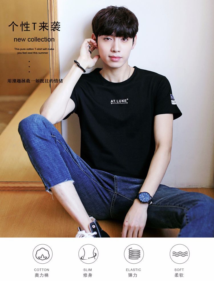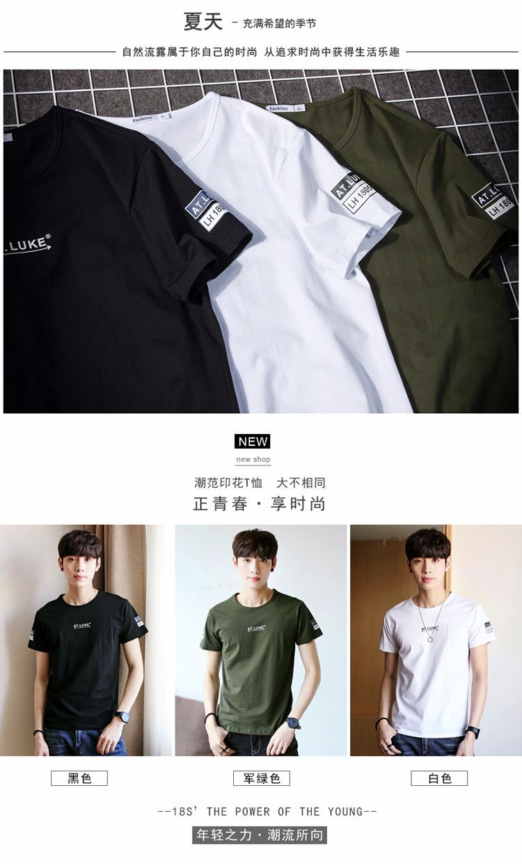 2018夏季男士時尚潮流印花短袖T體恤男圓領簡約半袖青少年潮