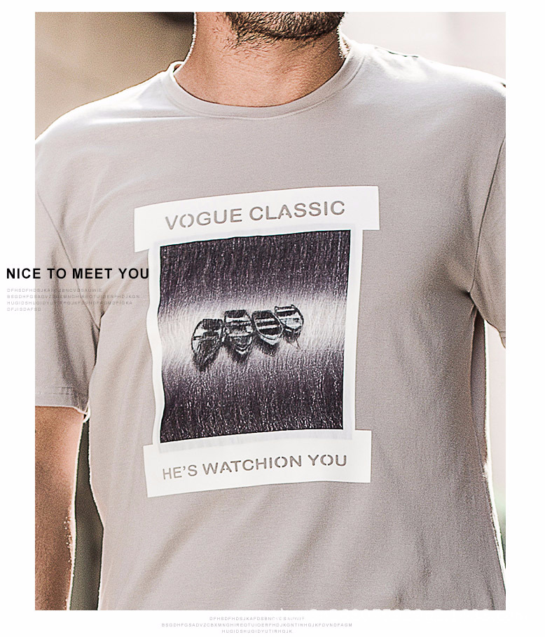 2018夏季男士時(shí)尚潮流印花短袖T體恤男圓領(lǐng)簡(jiǎn)約半袖青少年潮