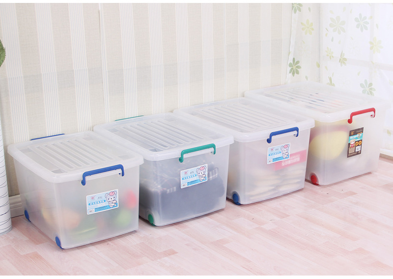 01帶輪家居儲物箱 家用大號收納箱塑料整理箱 衣服手提收納盒