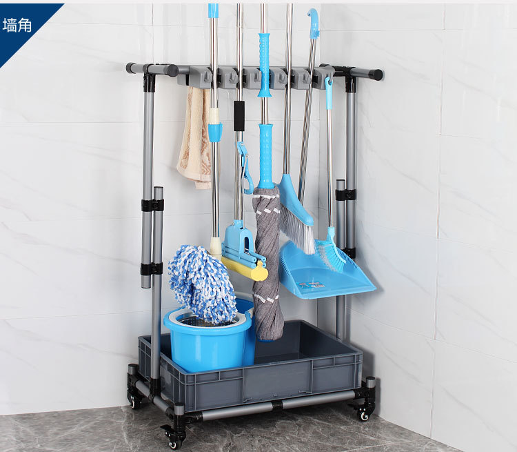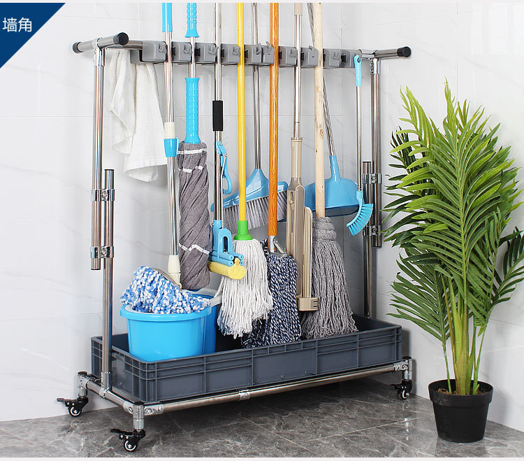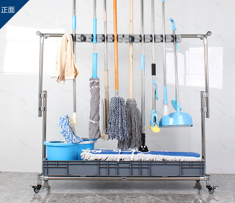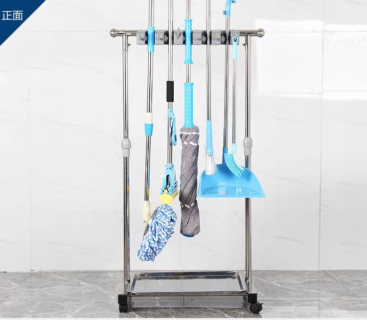16掛不銹鋼可移動拖把架落地式掛架掃把墩布置物架011