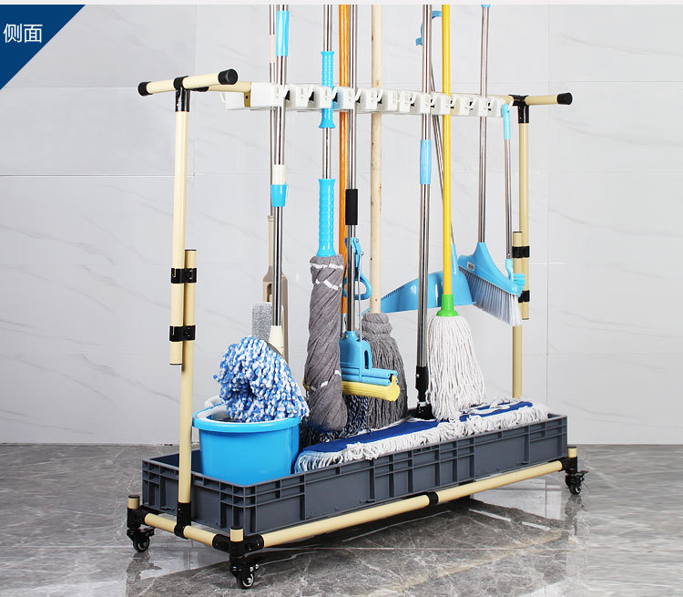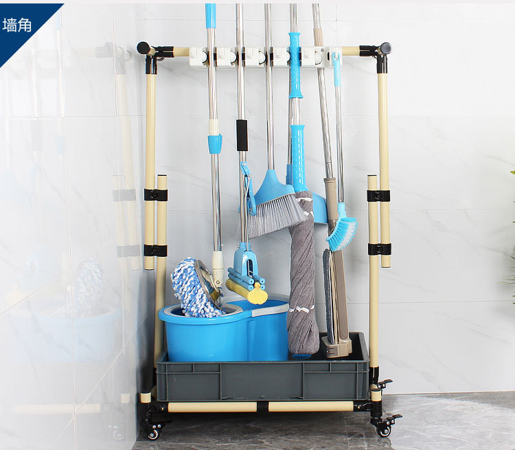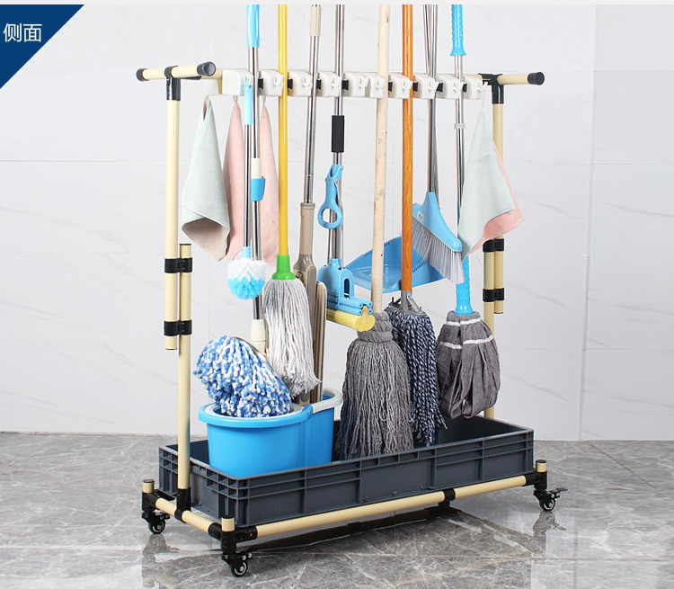 011可移動落地拖把架米黃色16掛20鉤掛架子墩布架收納架