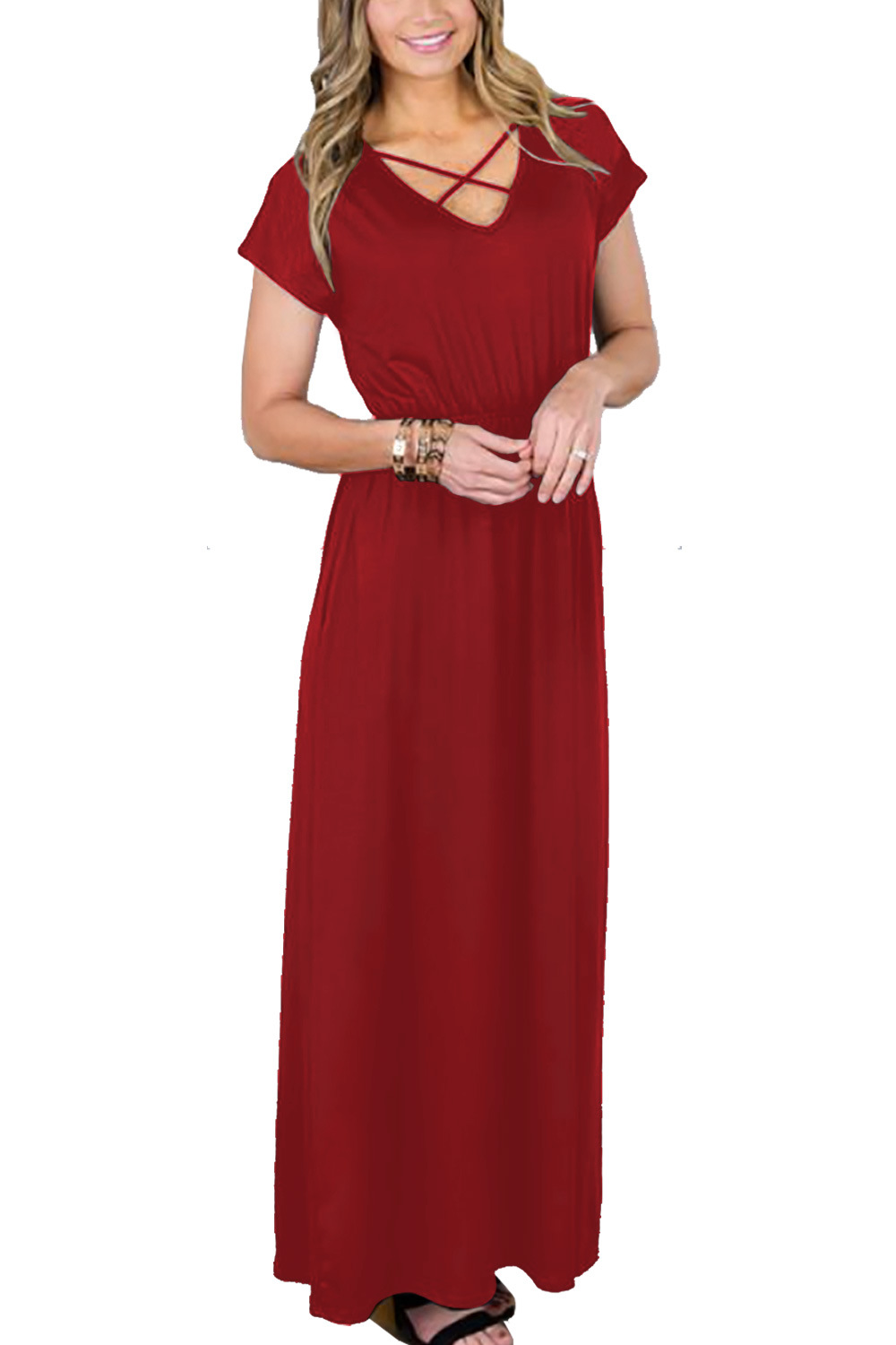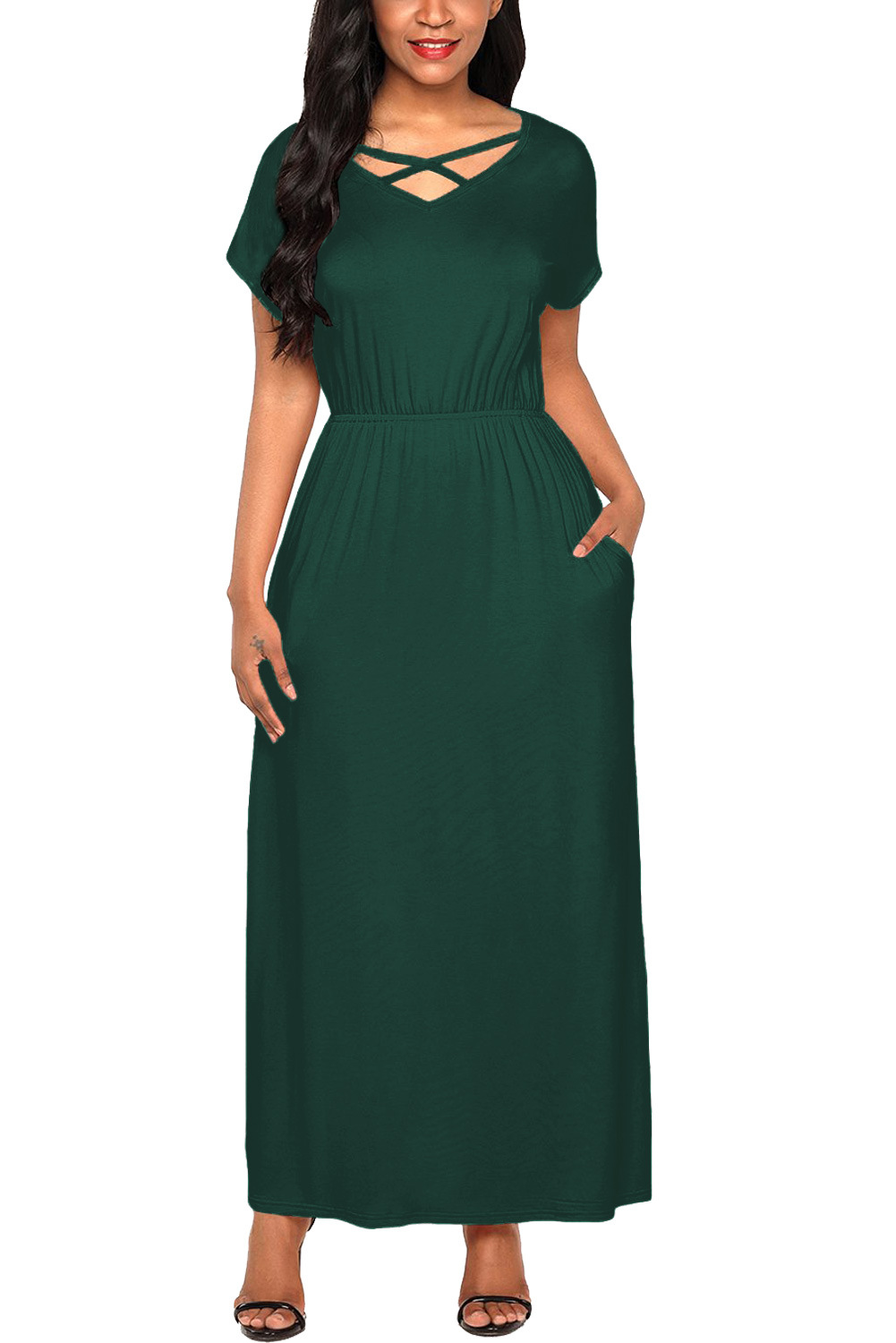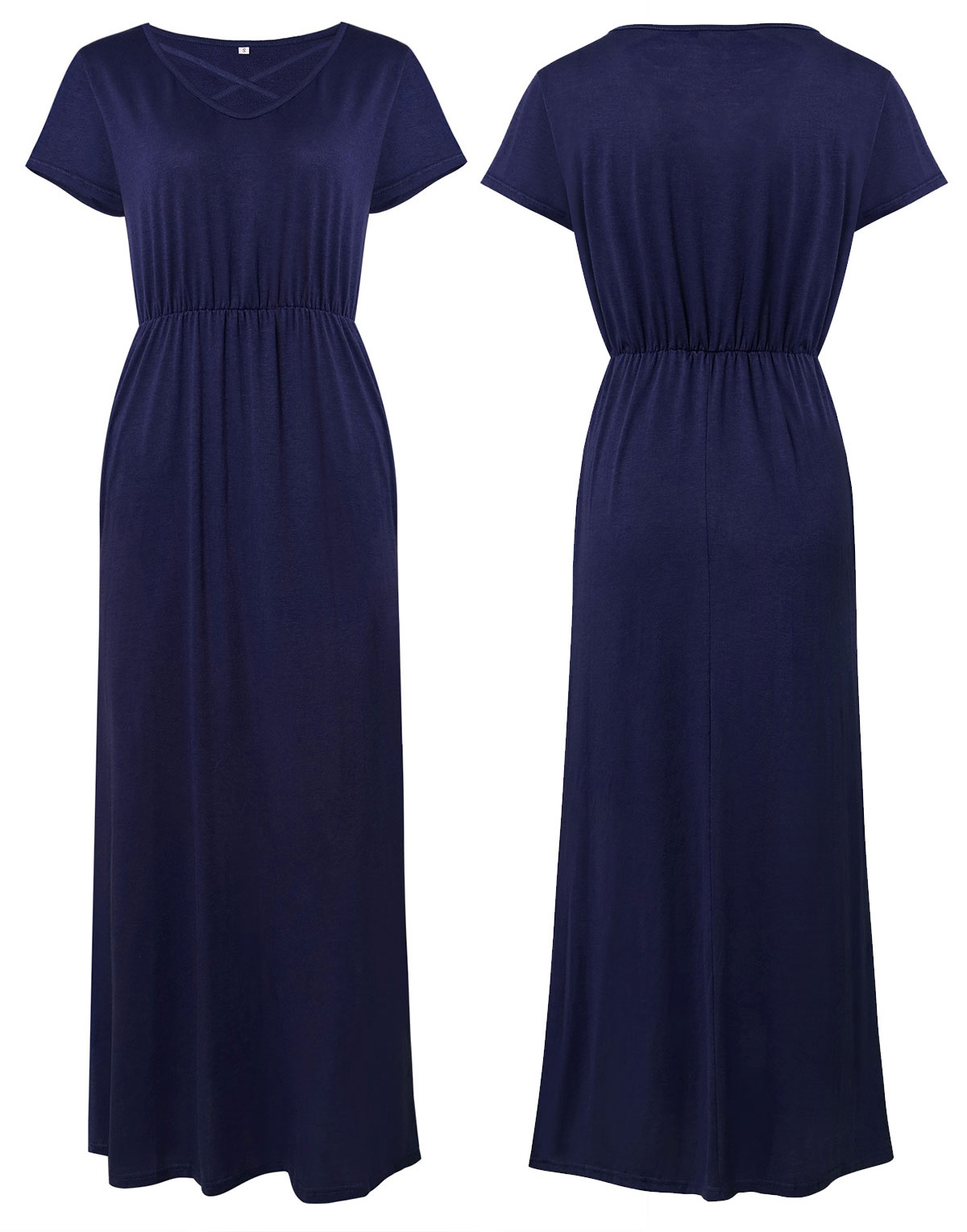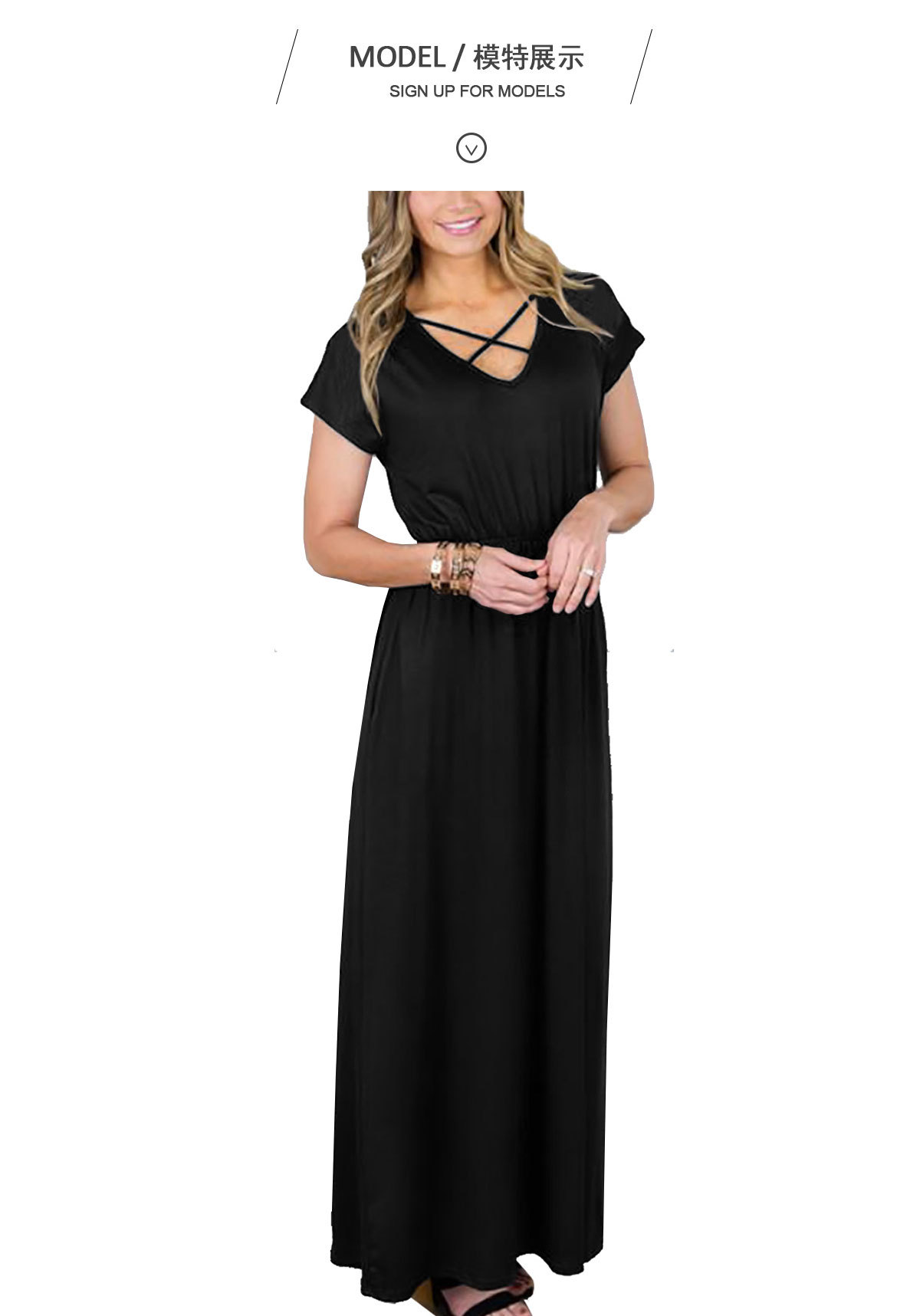 亞馬遜爆款女裝 歐美印花連衣裙 印花大擺長裙 有口袋 腰帶