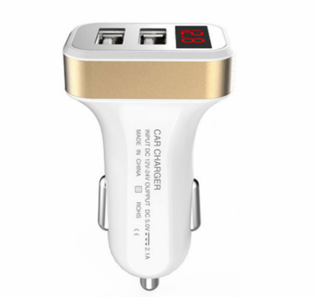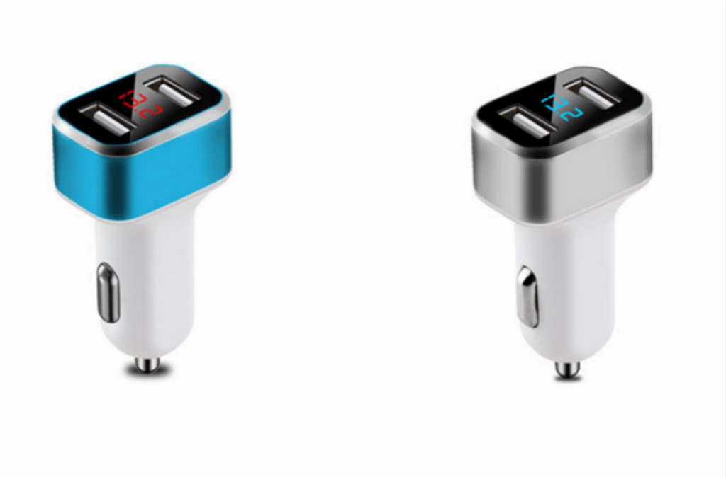 012 車載充電器雙USB車充汽車手機充電器 車充金屬數(shù)顯