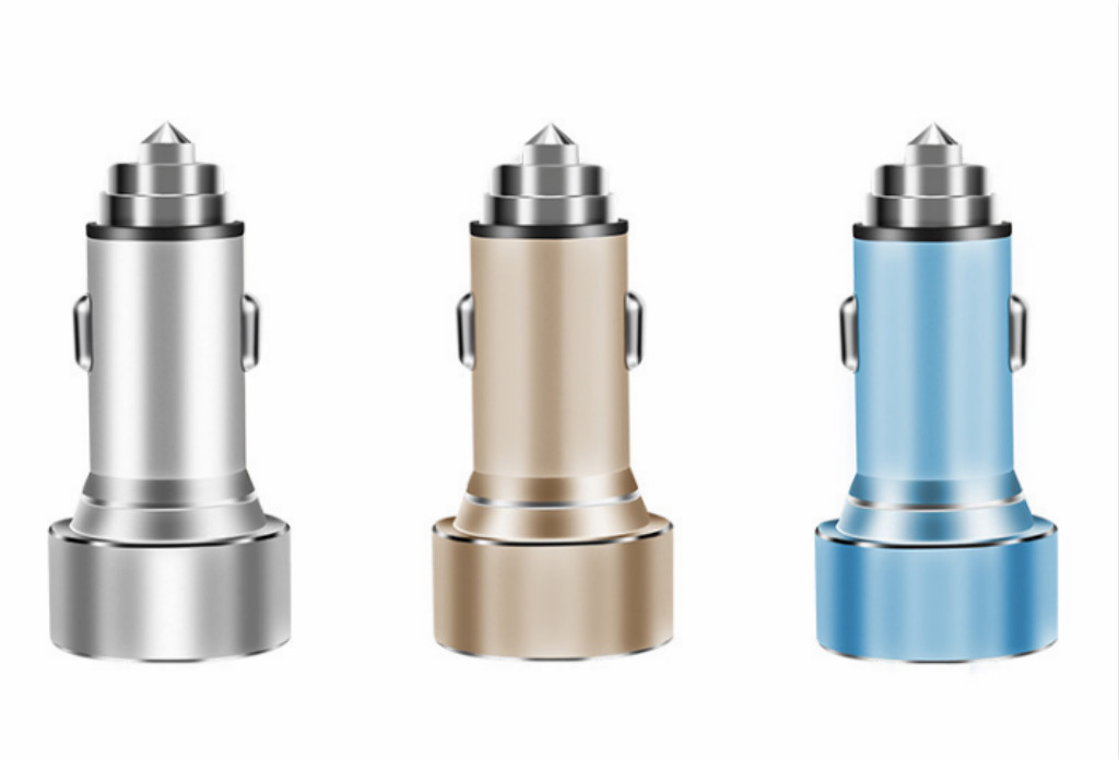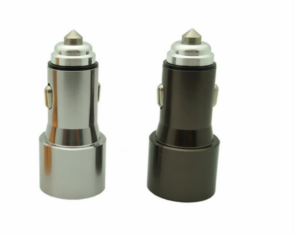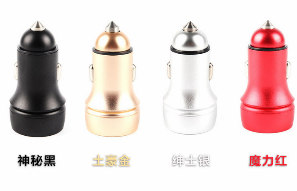 012手機雙USB安全錘 車充 迷你金屬鋁合金快充 2.4A
