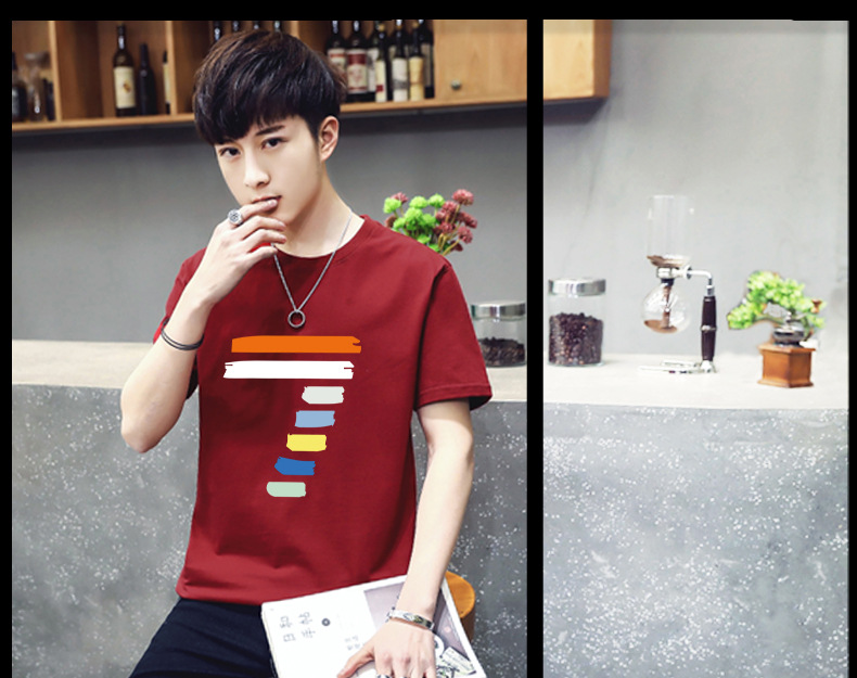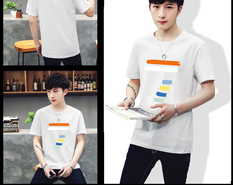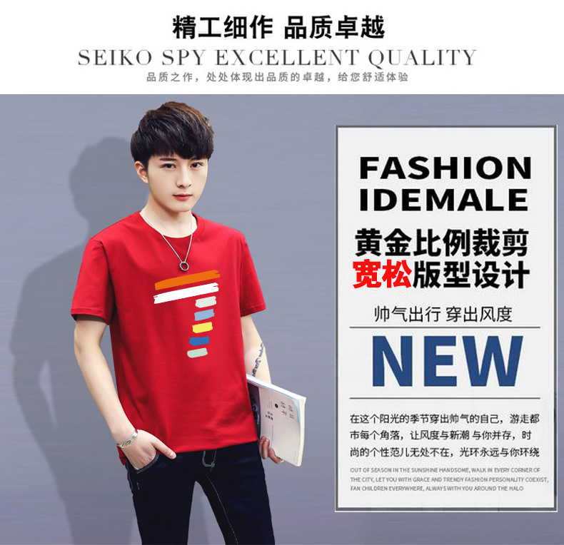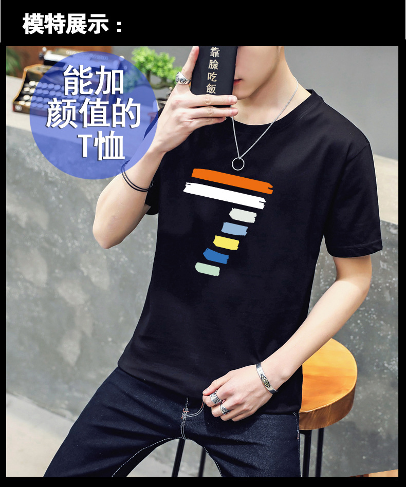 2018夏季男士時尚潮流印花短袖T體恤男圓領簡約半袖青少年潮
