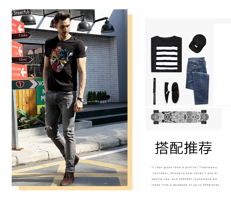 男裝2018夏季新款體恤組合印花歐美潮牌圓領修身男式純棉短袖